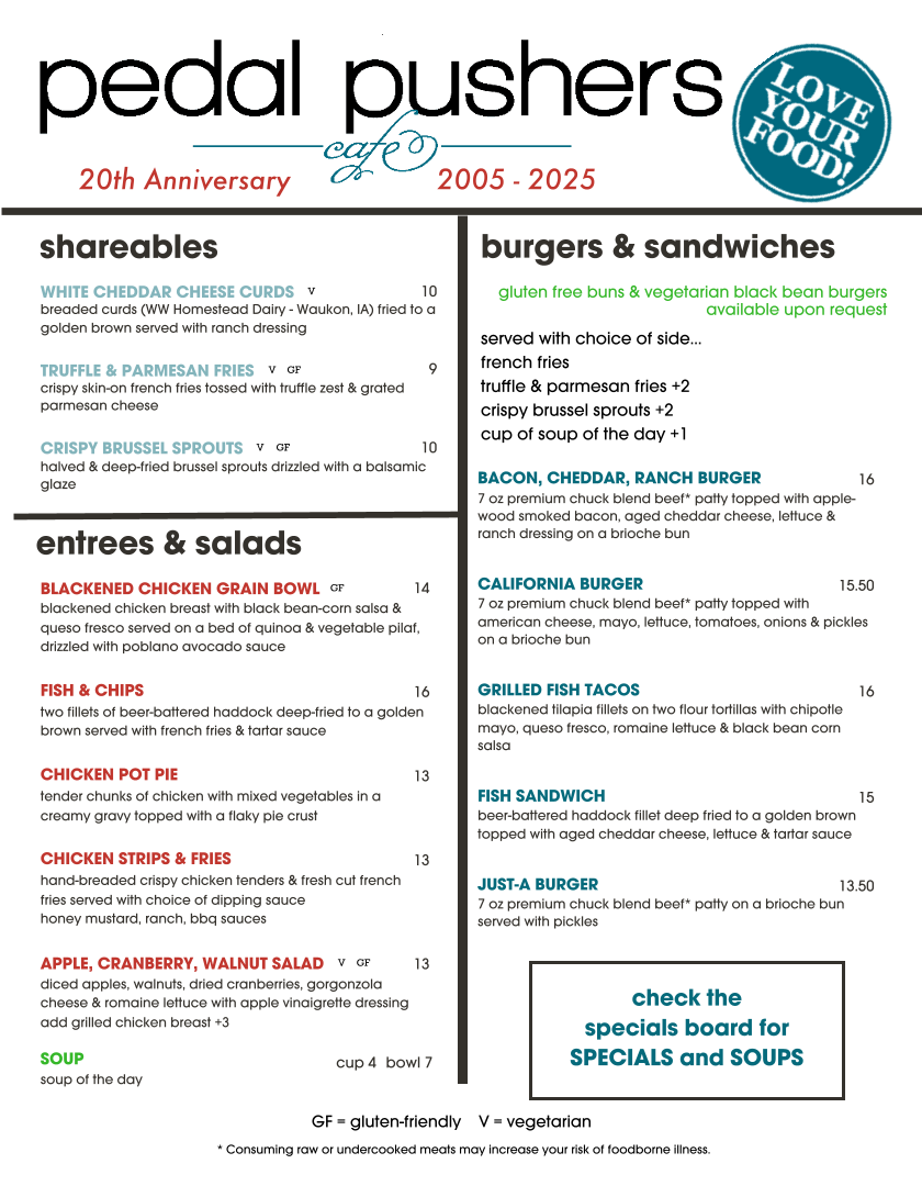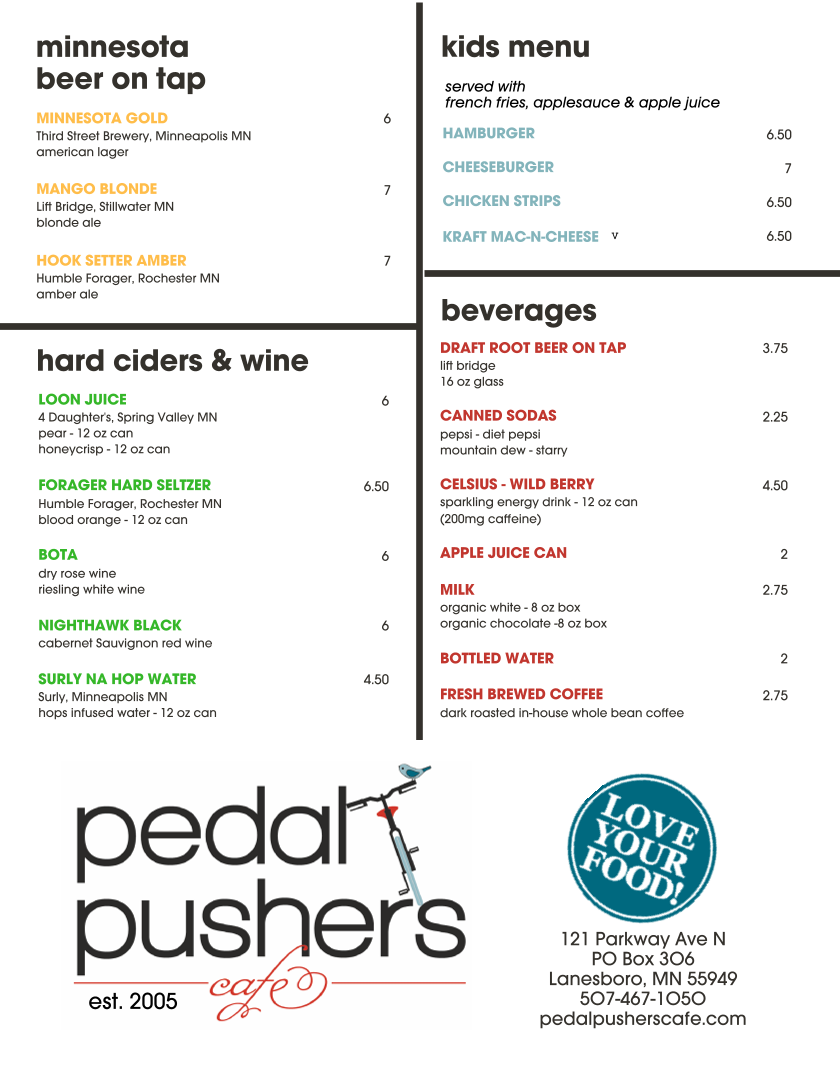 Welcome to Pedal Pushers Cafe, a hidden gem located at 121 Parkway Ave N in Lanesboro, MN. This cozy eatery blends casual charm with a menu that boasts mouth-watering dishes, perfect for both cyclists and food lovers alike.